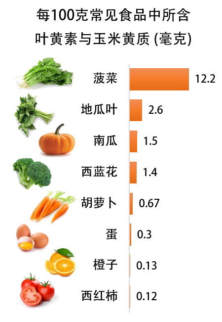 叶黄素和玉米黄素是构成视网膜黄斑区域色素的重要成分,又称为黄斑色素。黄斑色素具有强大的抗氧化能力和过滤有害蓝光的作用,能有效保护视网膜免受氧化损伤。主要包括以下食物: