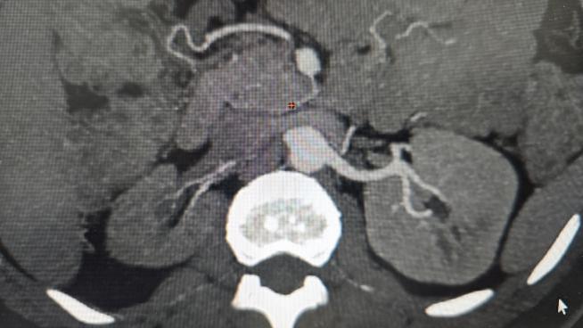 高血压,这一通常被认为是中老年人才有的疾病,为何会突然侵袭这位年轻女性?血管外科主任杨永久经过仔细的询问病史、查体及检查后发现,赵女士的病情十分严重复杂,患者血压一度高达230/140mmHg,且联合应用降压药仍不能有效控制,血压水平一直在180/120mmHg左右,如此高的血压,赵女士随时有脑血管破裂出血的风险;同时肾动脉闭塞已有两年,增强CT显示右侧肾脏明显萎缩,找不到右肾动脉开口,右肾动脉远端纤细。面对这么复杂严重的病情,选择手术切除右肾?还是尝试开通闭塞的肾动脉?哪一种手术都有较大的风险,这让杨永久内心有一丝的迟疑。但面对赵女士强烈保住肾脏的期望,作为一名医者和守护人民健康的医疗事业坚守者的杨永久深感自己责任重大,使命在肩!经过与科室团队认真细致的专业判断及术前准备,杨永久决定为赵女士尝试进行微创开通肾动脉治疗。