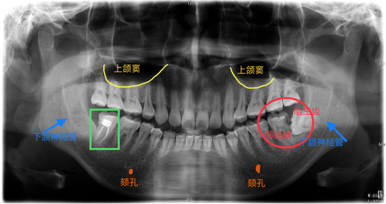 ⑤对上下颌骨、上颌窦、窦底轮廓等解剖的健康情况判断;