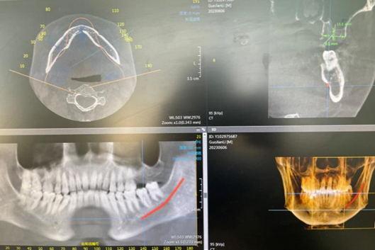 CBCT为三维成像,能提供的口腔内信息更为详细准确。它可以更加立体地观察多生牙、阻生牙的位置及周围组织结构。而且可用于种植手术前,确定牙槽骨的宽度、高度以及与上颌窦底、下齿槽神经管的位置关系,选择相应的种植体及手术方式,以达到最佳种植效果。
