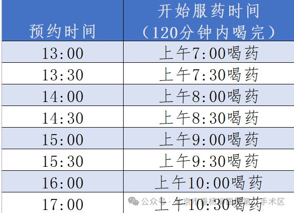 检查前一天晚23:00后至服药前禁食水。检查前6小时口服4盒。用3000ML(约500ML矿泉水6瓶)温水冲服,2小时内喝完。(如医生为您开具了二甲硅油散,请将二甲硅油散与最后一杯药混合后一同溶入温水中口服即可。)服药后请适量运动,帮助肠道蠕动,便于大便的排出。肠道清洁标准是末次排便为清水样即可。(标准因人而异,一般排便次数在8到10次为宜。)