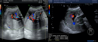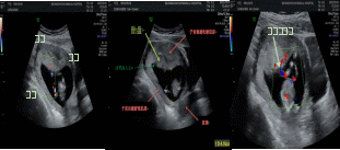 据统计在早孕期约20%-50%胎盘覆盖或毗邻子宫颈内口。如图1超声在早期产前筛查时可以观察胎盘,一般会描述其位置,在前壁、后壁还是宫底,在超声图1中胎盘位于后壁,覆盖宫颈内口。此图可以为整个孕期胎盘定位及临床急症处理时做参考。