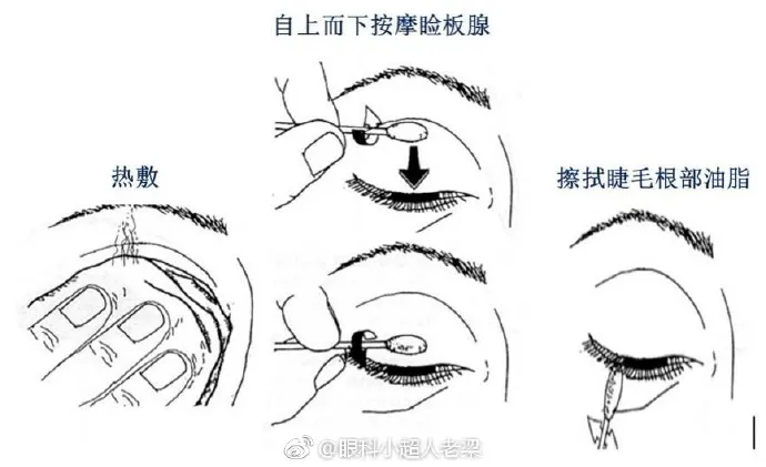 除物理治疗外,也可在家里用中药外敷眼部,每次持续10 min,每日2-3次。常用中药有:鱼腥草、银花、蒲公英、雷公藤、秦艽、防风、紫草、薄荷、野菊花等。