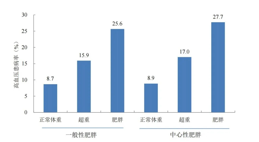 不同体重状态儿童的高血压患病率(%)