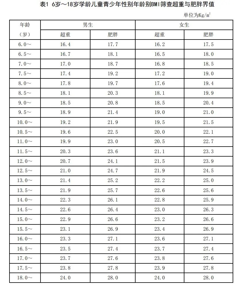 BMI=体重(kg)/身高2(m2)。对于2-18岁儿童及青少年可以用简便方式来判断是否超重或肥胖: