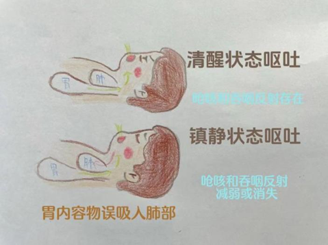 患者在手术过程中可能会感到紧张或不适,导致呕吐。如果患者在手术前已经禁食,呕吐物不会进入气管,否则可能会引起吸入性肺炎或窒息。