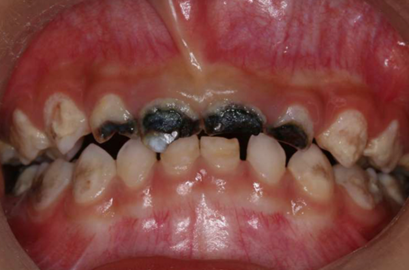 2.对邻近恒牙及继替恒牙造成影响。乳牙龋坏使食物残渣、软垢等停滞在口腔内,口腔卫生恶化,使新萌出的牙更易发生龋坏。乳牙发展成根尖周炎后,炎症会影响后继恒牙牙胚,可使其釉质发育不全。