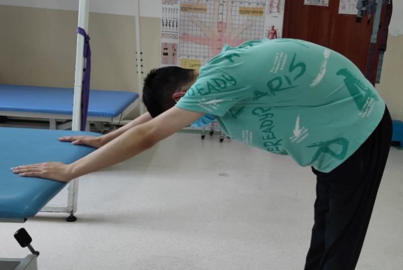 身体向前弯曲,手臂自然下垂放松,利用身体的晃动带动上肢进行顺时针或逆时针方向转动。