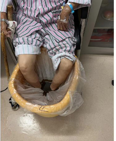 糖尿病日久,常合并周围神经病变、周围血管病变,出现下肢发凉、麻木、疼痛、皮肤瘙痒、灼热感等不适,采用中药泡洗治疗,一方面可以促进血液循环;其次可以刺激足部穴位、反射区和经络,起到温经通络的作用;再者,根据中医辨证施治原则,针对不同患者开出中药泡洗方开展中药泡洗,并辅以神灯、中频电治疗仪等物理治疗,通过皮肤作用于肌体,能够促使腠理疏通、脉络调和、气血流畅,从而达到预防和治疗疾病的目的。