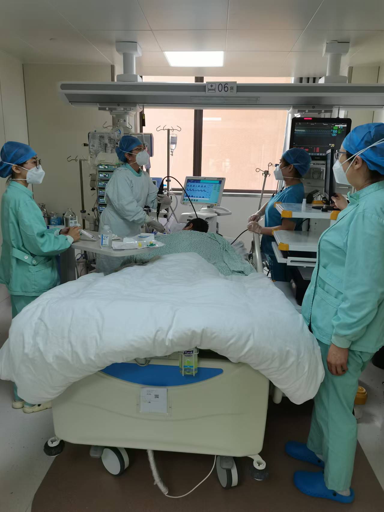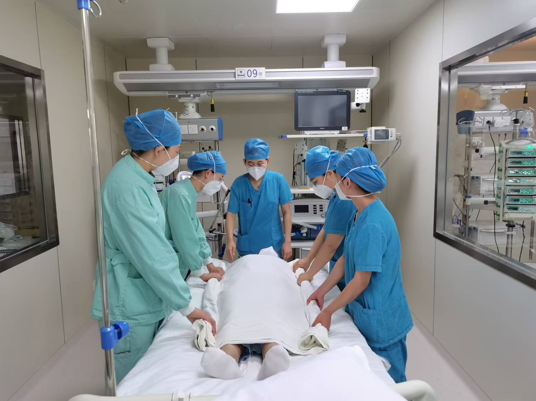 (7)第3,5人协助患者下肢的肢体摆放及固定好下肢导管。