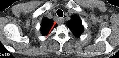 患者男性,60岁,主因“发现纵隔肿物9天余。”来诊。患者自述9天前因吞咽食物不适感查胸部增强CT,发现上纵隔气管右后方占位,大小约22*24mm,边界欠清,增强扫描不均匀强化,局部气管、食管受累,恶性待排,双肺及纵隔未见肿大淋巴结,未见胸腔积液,后完善胸部增强核磁:上纵隔气管右后方占位不均匀强化,局部气管、食管受累恶性病变待排,必要时穿刺活检;遂于当地医院依次行气管镜、胃镜检查,结果提示:气管上段右后侧壁外压型改变并管腔轻度狭窄;食管管腔通畅,未见异常隆起及异常外压改变,均未取到有效的病理结果。