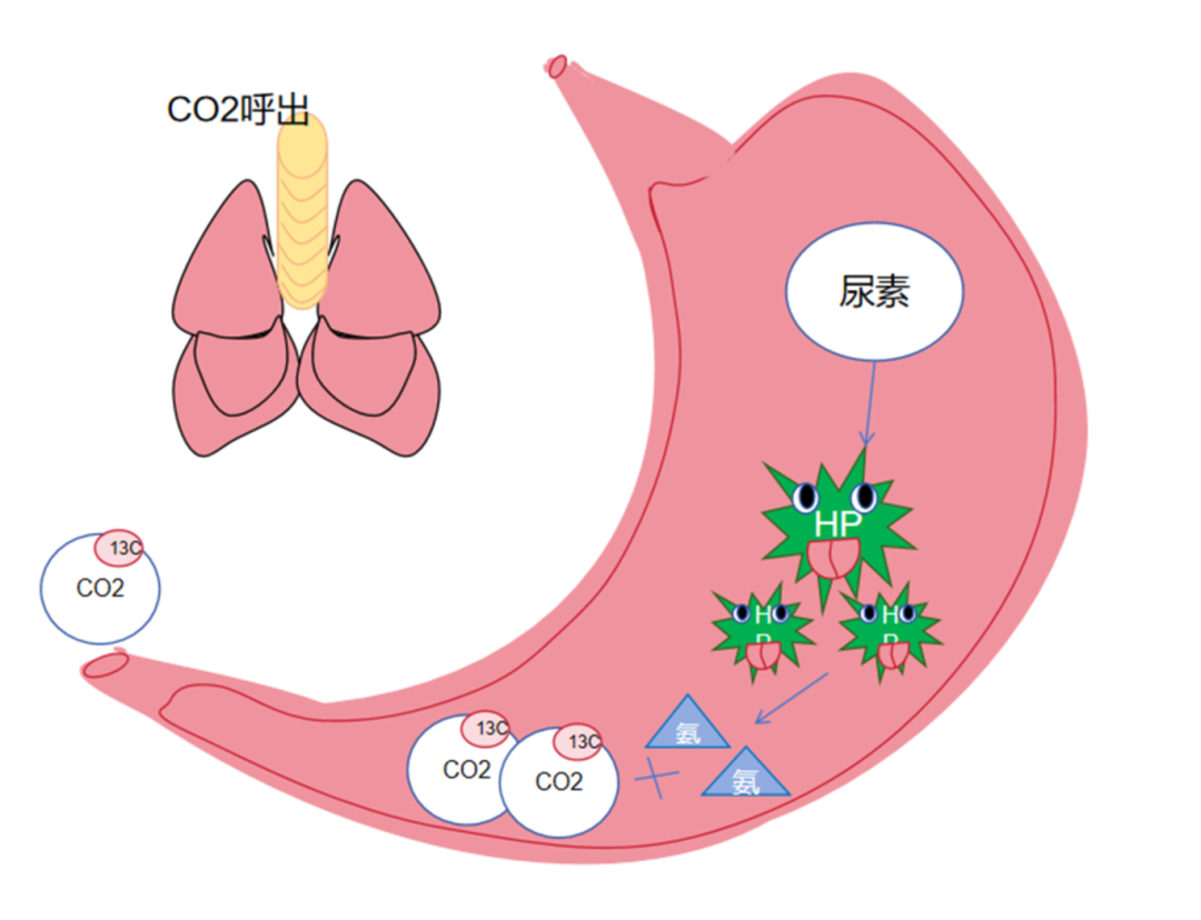 这个试验的原理,就像是给幽门螺杆菌布置了一个“甜蜜陷阱”。如果患者胃里有幽门螺杆菌的话,那么患者口服含有13C标记的尿素后,幽门螺杆菌就会像贪吃的小怪兽一样,把尿素分解成氨和13C标记的二氧化碳。这些二氧化碳会顺着血液循环跑到肺部,然后从嘴巴里溜出来。我们检验科的工作人员,只要抓住这些跑出来的二氧化碳,看看它们身上的13C标记,就能知道胃里有没有幽门螺杆菌在“搞破坏”啦!