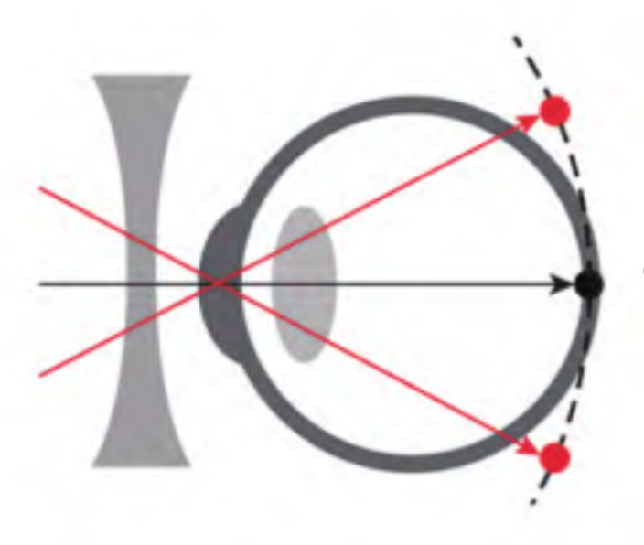 单焦镜片,周边部光线聚焦于周边视网膜后