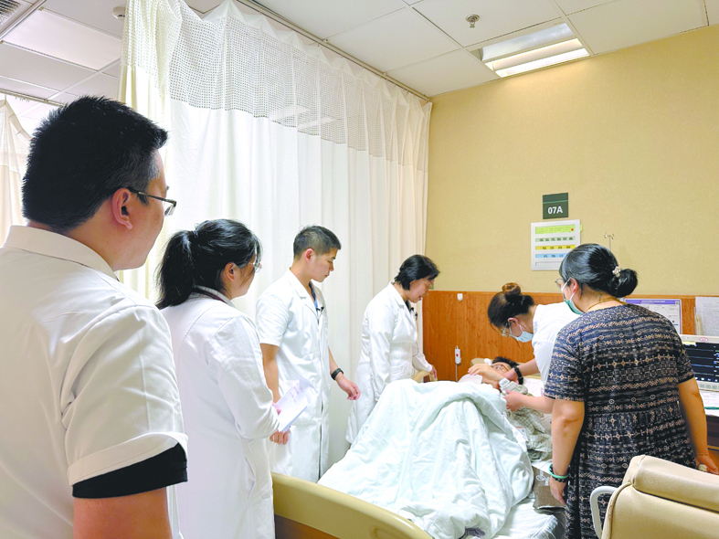 张萍(后排中)为遗传性心律失常患者看诊。受访者供图