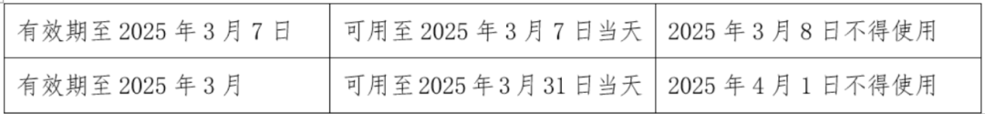 若有效期直接标明到日,表示可以用至当日;若有效期直接标明到月,表示可以用至当月月底。