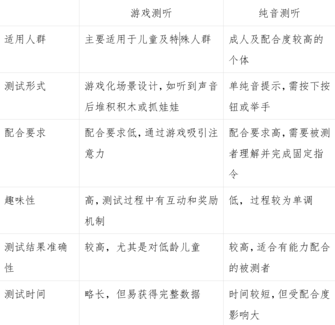 二、游戏测听与纯音测听的区别
