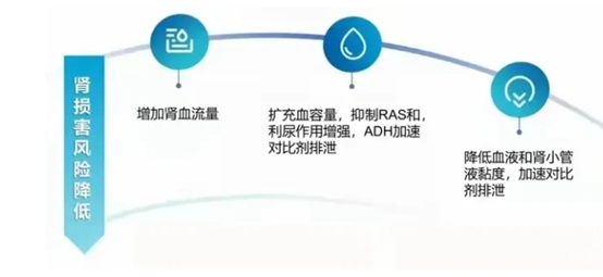 这种行为在医学上的专用名词为“水化”。水化可加快肾血流量,扩充血容量,抑制RAS(肾素-血管紧张素)增强利尿作用,降低血液和肾小管液粘度,使对比剂快速随尿液从人体内排出,从而进一步提高对比剂使用的安全性,降低肾损害风险。