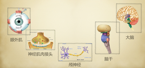 支配眼球转动这一动作是由大脑发出指令,传至脑干、脑干将神经冲动通过三对颅神经传导至神经纤维末梢,释放神经递质,眼外肌接收到神经递质传来的信号收缩眼外肌,双眼同步转动眼球。这是一个精细的传导过程,在这个过程任何一个环节出现问题都会导致患者出现双眼复视。如:脑梗死、颅内占位、脱髓鞘病、颅高压、重症肌无力、甲状腺相关眼病、眼眶炎性假瘤,急性共同性内斜视等。