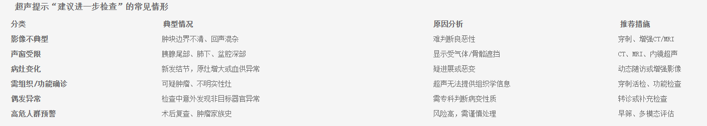 现代医学提倡“多模态影像整合”,即将超声、CT、MRI、X线等多种检查结果进行综合判断,以提高诊断准确率。超声医生提出进一步检查建议,并非说明不确定或“推卸责任”,而是出于对患者健康的最大保障。