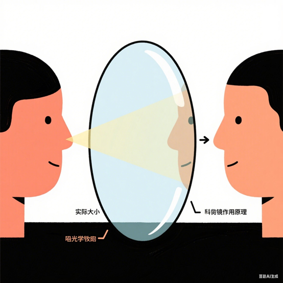 当你摘掉眼镜(换成隐形眼镜、或做完近视手术)后,没有了凹透镜的“缩小滤镜”,视觉系统会突然接收到未经“压缩”的真实图像,这种变化源于两个关键机制: