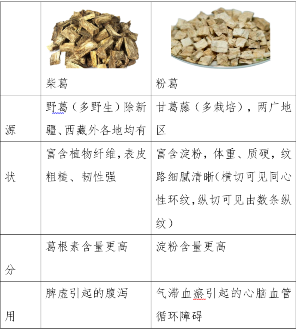 而柴葛中葛根素的含量更高,其具有扩张冠状动脉,改善心肌代谢,抗心律失常,改善微循环和脑循环,降血压、降糖降脂等作用,因此柴葛更适合用于活血化瘀,改善循环。