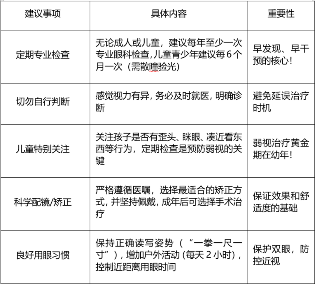 这是基石!尤其是儿童青少年,每6个月进行一次专业的散瞳验光检查至关重要,及时捕捉度数变化,特别是近视进展较快的那只眼。
