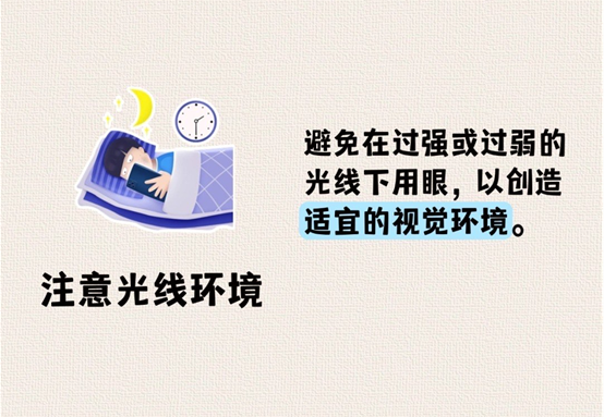 确保光线充足:开灯!开灯!开灯! 重要的事情说三遍。务必在光线充足、柔和的环境下使用手机等电子设备。一盏合适的背景灯(如床头灯)能有效减少屏幕与环境的亮度差。