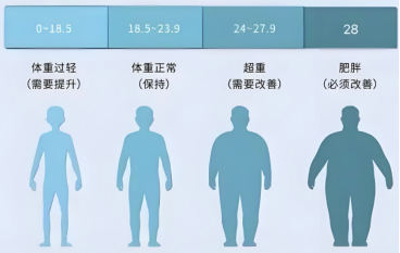 BMI(身体质量指数)是衡量人体胖瘦程度和健康状况的一个重要指标。成人正常BMI范围是18.5≤BMI<24.0,男性腰围不超过85cm,女性腰围不超过80cm。体重超标会增加糖尿病、高血压、骨关节病风险;体重过低可能引发免疫力下降、骨质疏松等问题。