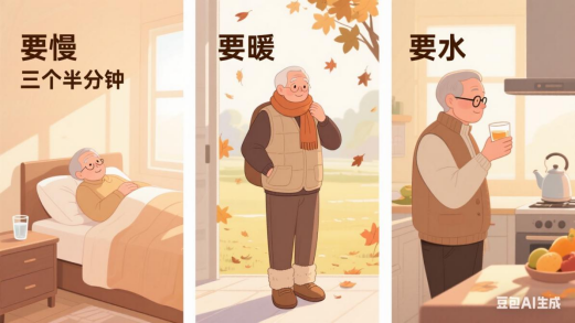 要 “慢”:早晨起床遵循“三个半分钟”原则——醒来后躺半分钟,坐起来等半分钟,双腿下垂在床沿再坐半分钟。