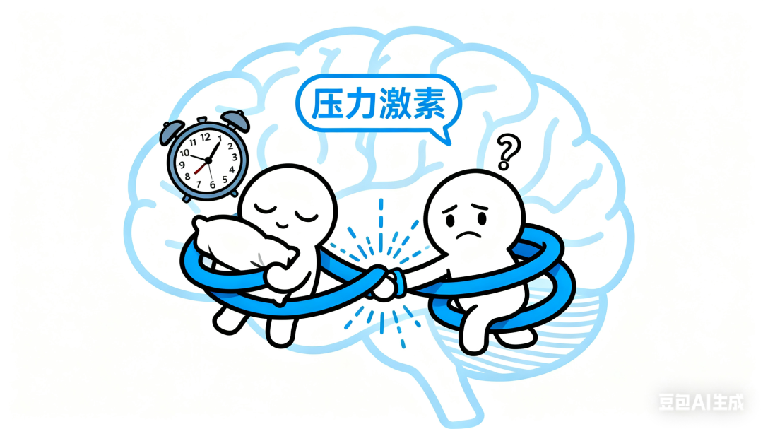 而当睡眠长期被剥夺,身体里的压力激素——皮质醇——会持续升高,把原本只是“小情绪”的痛苦放大成雪崩,最终让焦虑和抑郁都滚成越推越大的雪球,压得人喘不过气。