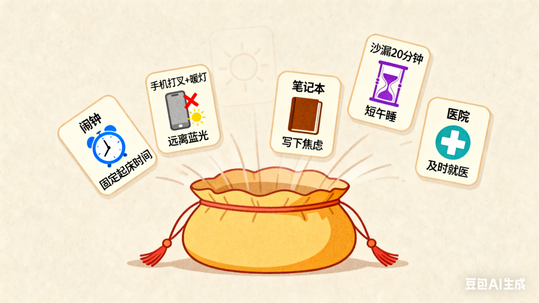 2)森田疗法:学会“带着症状生活”,打破“越怕失眠越失眠”的恶性循环。