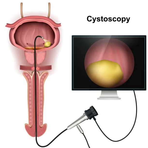 通俗来讲,它是一根前端带摄像的细管(膀胱镜),经人体自然腔道的尿道轻轻插入膀胱,通过摄像头传导到显示屏实时观察膀胱内部情况的检查。就像给膀胱内“安装了摄像头”,能以各种角度清晰看到黏膜是否有炎症、溃疡,是否存在结石、肿瘤或异物,还能在发现异常时直接取一小块组织做病理分析(活检),明确诊断。