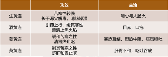 · 又如黄连本为清热泻火之要药,但有苦寒伤中之弊,体虚者不宜,经辛热之吴茱萸汁制后,缓和黄连苦寒之性,使其寒而不滞,同时也扩大了用药范围,能清气分湿热,散肝胆郁火。