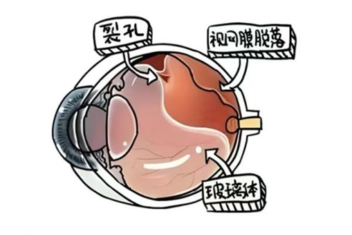 一般高度近视患者因为眼轴变长、眼球变大,视网膜也会相应被撑大。液化、病变的玻璃体中的纤维条索会与视网膜发生粘连,并对于视网膜产生牵引力,如果高度近视患者进行剧烈运动或眼部受到冲击和外伤时,就会引起视网膜破裂,进而造成视网膜脱落。
