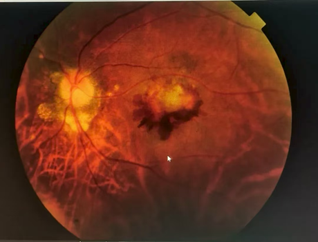 由于多数高度近视患者的眼轴被拉长,造成眼部血液循环障碍和营养不良。如果黄斑区受到影响,可以引起多种黄斑病变,如黄斑裂孔、黄斑出血/新生血管等。这些病变轻则可造成患者中心视力下降,重则可造成患者眼前黑影或视物变形甚至导致失明。