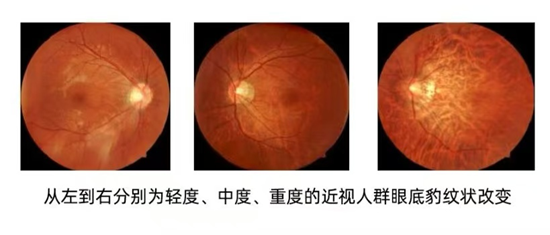 如同过度拉伸的丝绸出现纹路,视网膜和脉络膜血管在眼轴延长后变得细直,眼底呈现出特有的豹纹样改变,这是视网膜营养代谢异常的信号。