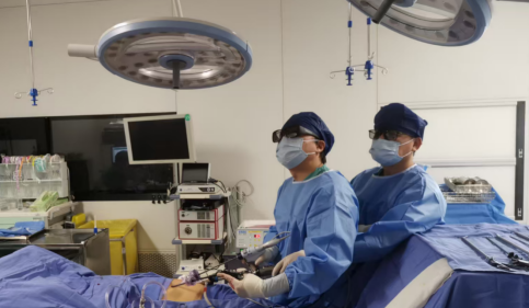 1.手术医生布置操作孔,进入腹腔镜操作器械。