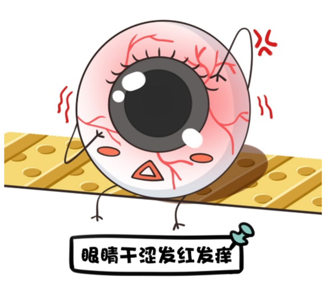 眨眼少+蒸发快,使得保护眼表的泪膜迅速破裂,角膜和结膜直接暴露在空气中,从而引发眼睛干涩、灼烧感、异物感、畏光、视物模糊等典型的干眼症状。