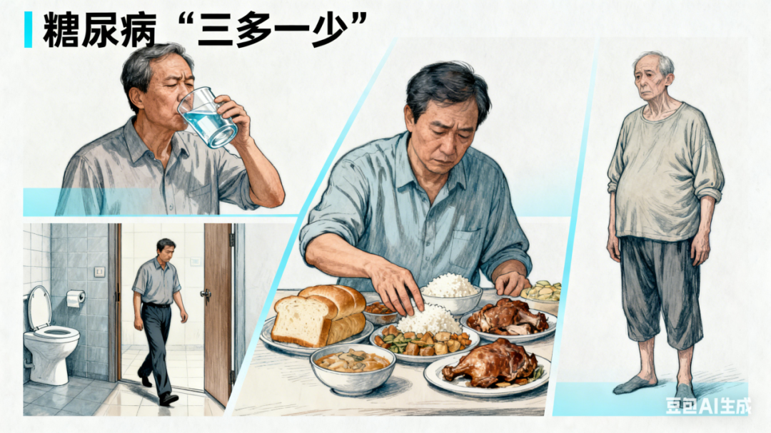 相信大家都了解,糖尿病的典型症状为“三多一少”,即多饮、多尿、多食及消瘦。但一部分患者病情轻、症状不明显,这也就让早期发现糖尿病成了难点。
