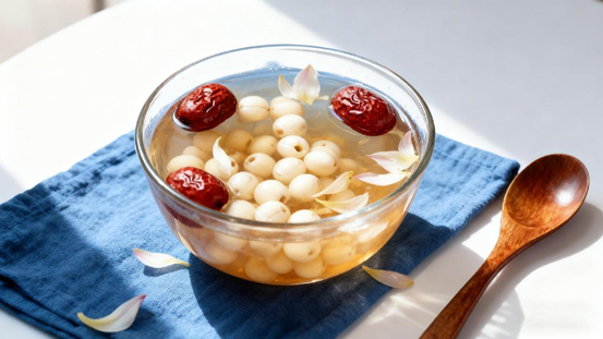 适合:熬夜失眠、心烦的人。食材:干枣5颗、百合15克、莲子15克(去芯)。做法:莲子泡发后,和红枣、百合一起煮40分钟,加少许冰糖。小贴士:睡前1小时喝效果好。