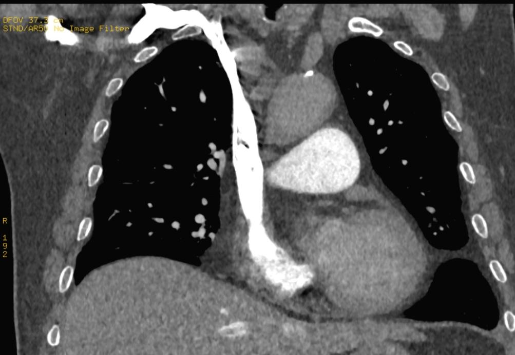 右锁骨下堵塞导致肺动脉充盈欠佳