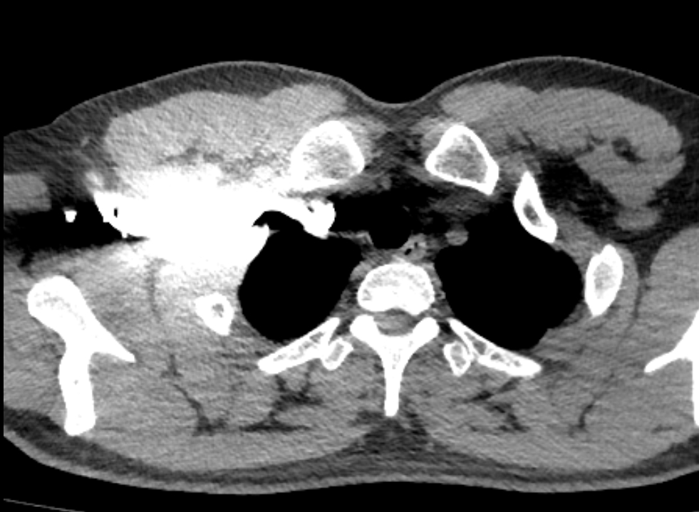 左侧锁骨下静脉需跨过主动脉弓,路程较远且比较迂曲,受解剖结构影响,左侧锁骨下静脉狭窄较右侧更为多见,且一般狭窄程度重于右侧,因此在注射对比剂时会引起阻力较大,容易出现以下情况: