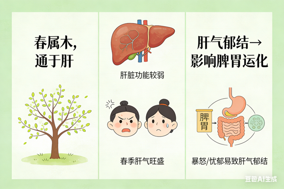 中医常说“春属木,通于肝”,春季是肝气旺盛的季节,而肝硬化患者本身肝脏功能较弱,一旦暴怒、忧郁,很容易导致肝气郁结,进而影响脾胃运化,甚至可能间接加重食道胃底静脉曲张的负担。