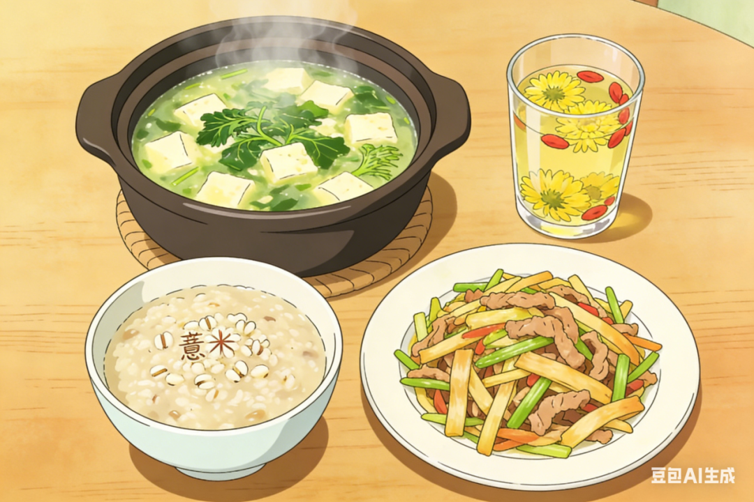 荠菜豆腐羹:荠菜能疏肝明目、利水祛湿,搭配豆腐健脾和中,口感清淡不油腻。做法简单,煮制软烂后食用,不会给肠胃带来负担。