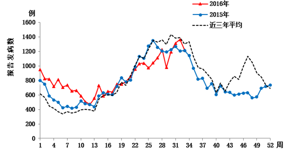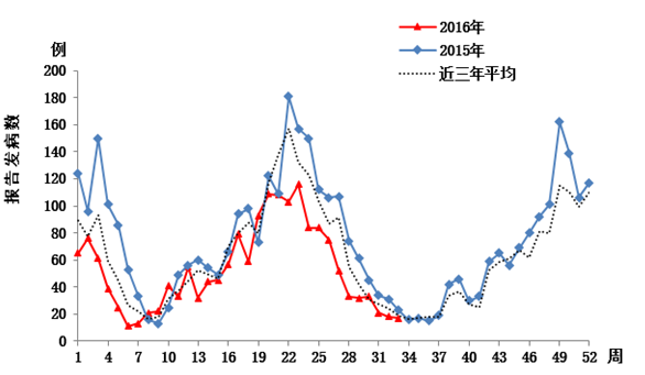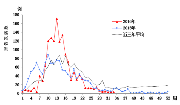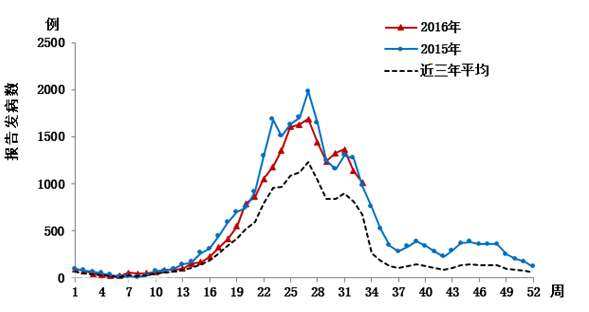 2016年第33周(2016年8月15日至21日),全市共报告法定传染病15种3074例,死亡5例。报告病例数居前5位的病种依次为:其它感染性腹泻病、手足口病、痢疾、肺结核和病毒性肝炎,共占法定传染病报告发病数的92.55%
