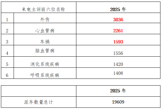 2025年4月14日8:00至2025年4月21日8:00,北京急救中心共派出急救车19609车次,根据来电主诉情况,外伤3036例位居第一位;心血管病2261例位居第二位;车祸1593例位居第三位;
