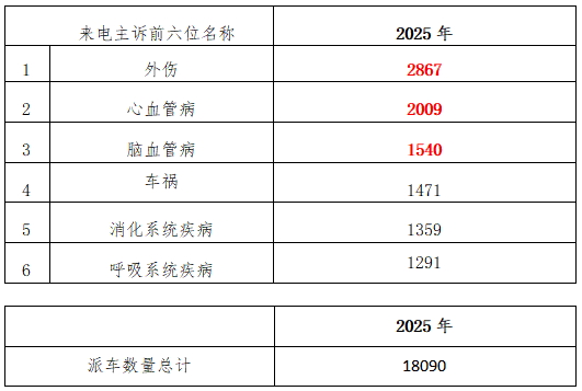 2025年5月5日8:00至2025年5月12日8:00,北京急救中心共派出急救车18090车次,根据来电主诉情况,外伤2867例位居第一位;心血管病2009例位居第二位;脑血管病1540例位居第三位;