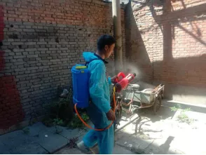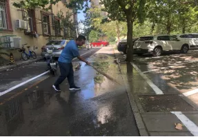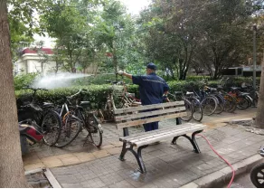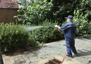 除采取物理防制行动外,八里庄街道聘请第三方消杀公司采取化学防制方法,对二道沟河河岸及周边平房区、雨水箅子、绿地、垃圾桶等进行滞留喷洒工作,做到不漏一条街巷、不漏一处孳生死角。