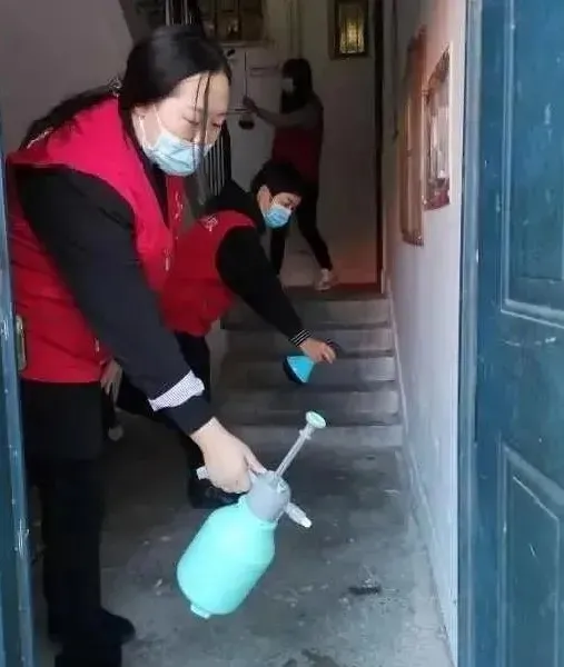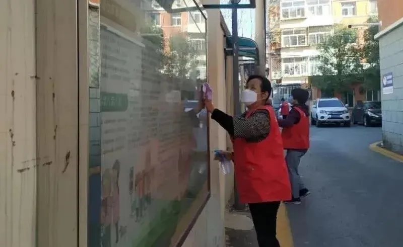 大家一起针对社区内的单元门、楼梯扶手、垃圾桶、社区健身器材、公共座椅等人员接触频次较高的区域进行擦拭、消杀。同时对道路两侧、休闲广场及周边、楼前楼后的杂草落叶进行彻底的清理,并对社区宣传栏的小广告进行了清除。