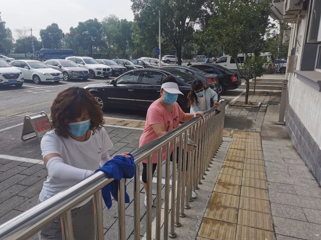在儒林街道办事处,机关党员干部拿着抹布、扫帚等清洁工具,分工明确、配合默契,认真清扫办公区域以及“门前三包”责任区域的灰尘,擦拭门窗护栏、摆放自行车,并对办公场所及重点区域进行全面消杀,确保办公环境及责任区干净整洁。与此同时,儒林街道永安社区工作人员也带领着居民、物业人员、志愿者积极开展楼道清洁整治活动。擦拭楼道扶手、宣传展板等,刷掉墙面上的小块污渍,用洒水车将门体污垢冲洗干净……在大家的共同努力下,楼道内外变得干净整洁。
